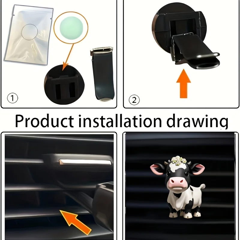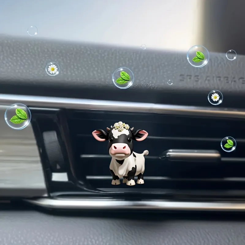 1PC Cute cow acrylic flat suitable for car air vents, aromatherapy clip, car interior decoration