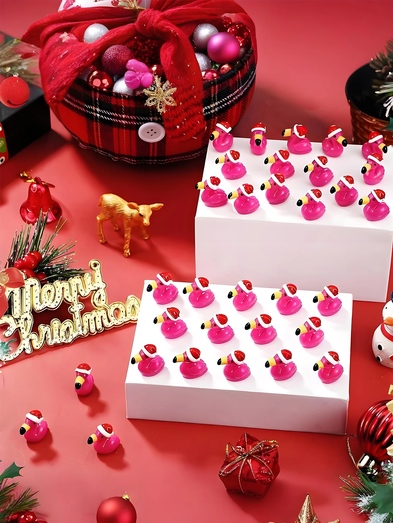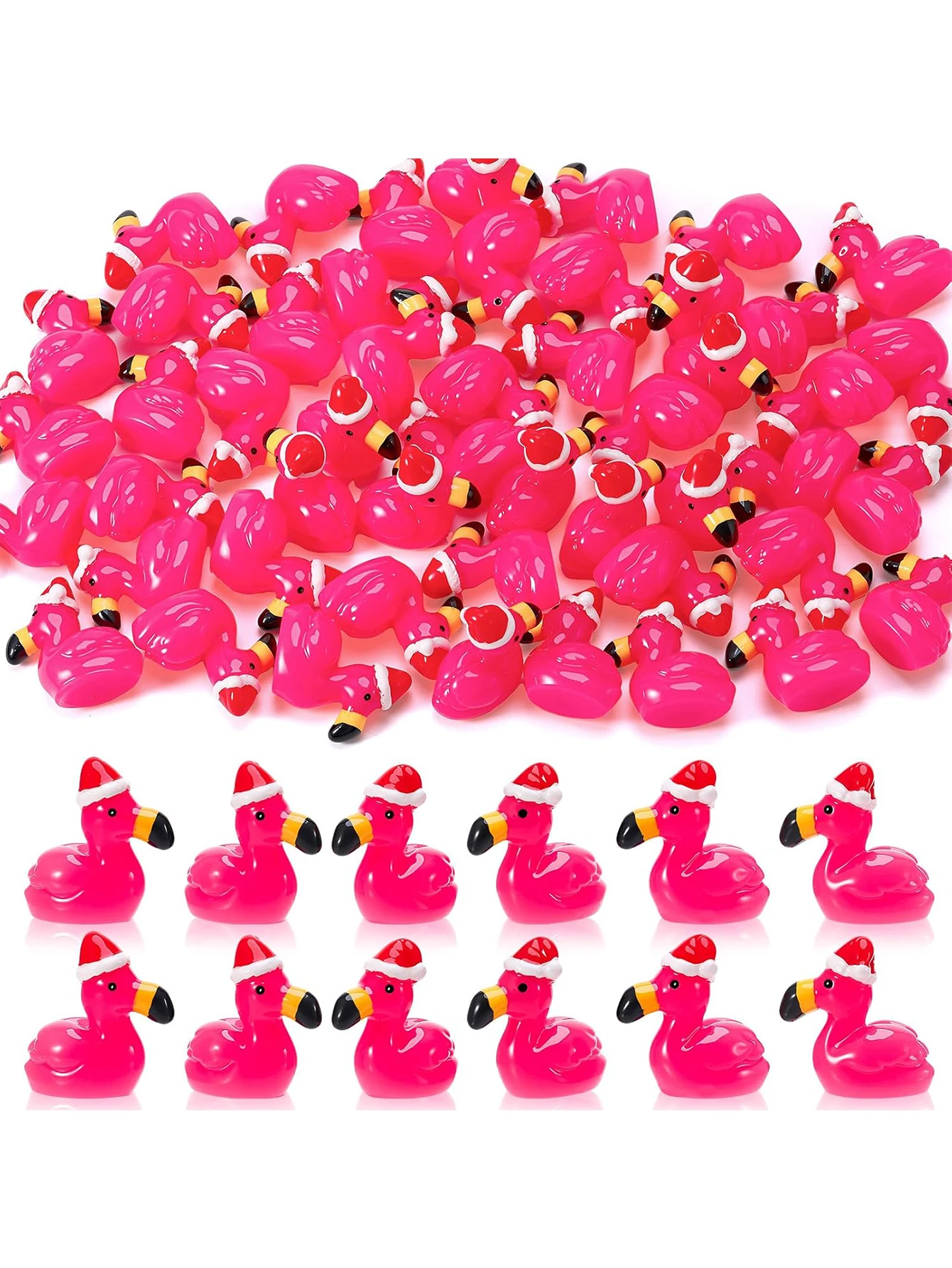 10/20PCS Mini Resin Hot Pink Flamingo with Santa Hat Christmas Xmas Ornaments For DIY Fairy Garden Home Holiday Party Decor Gift