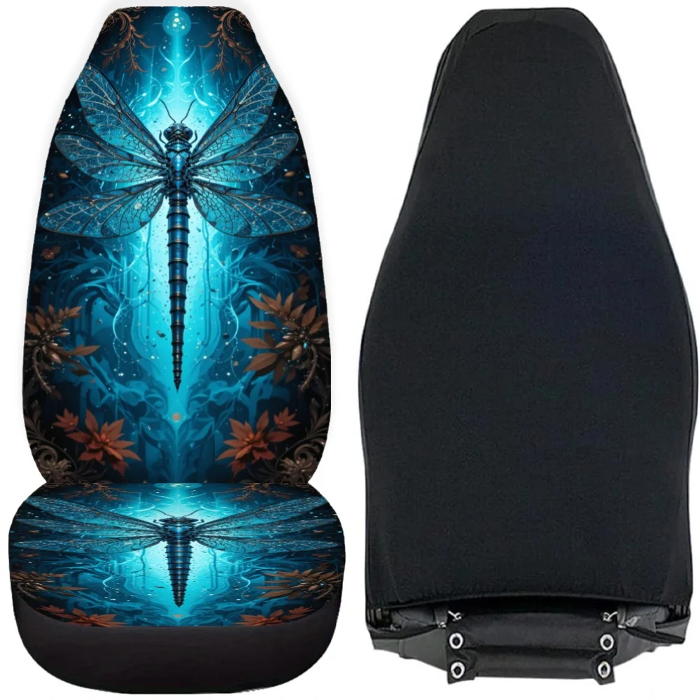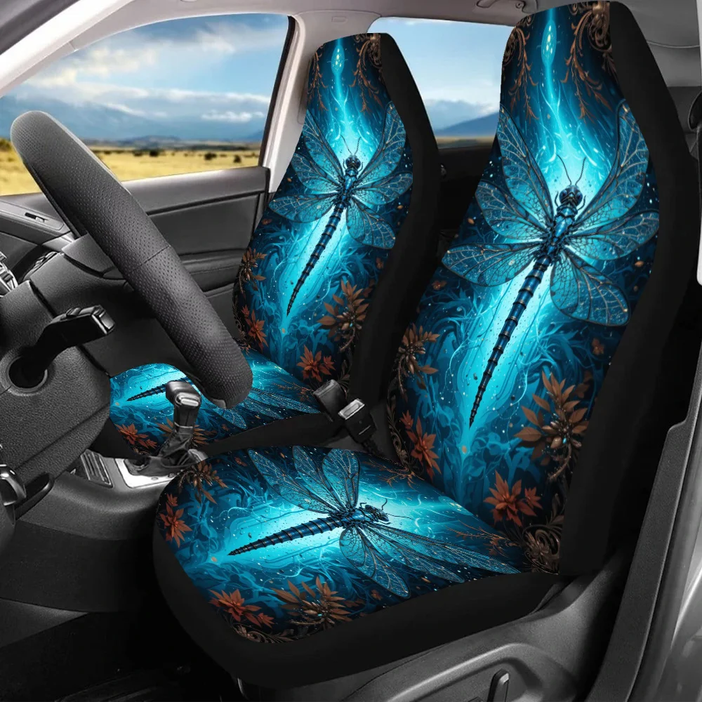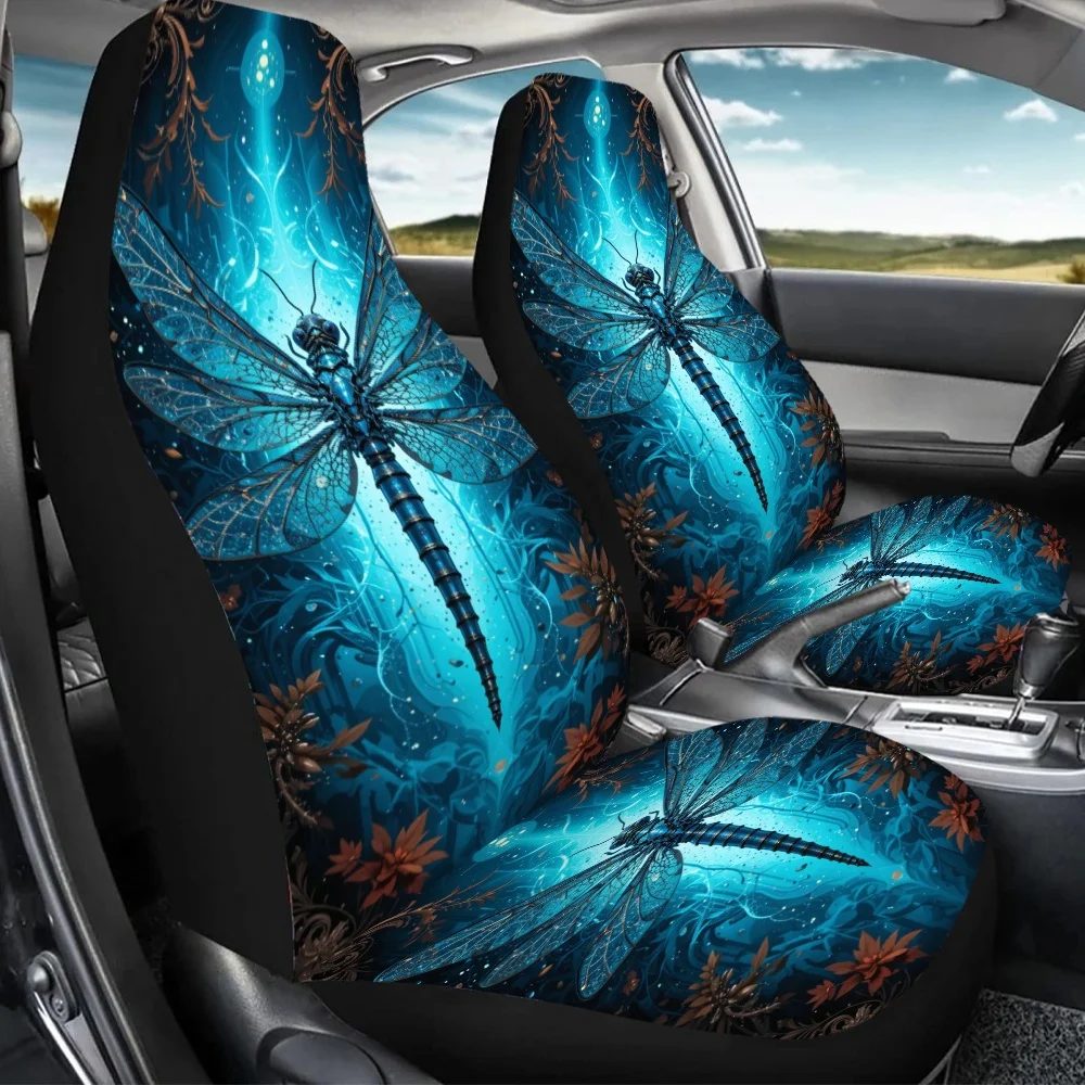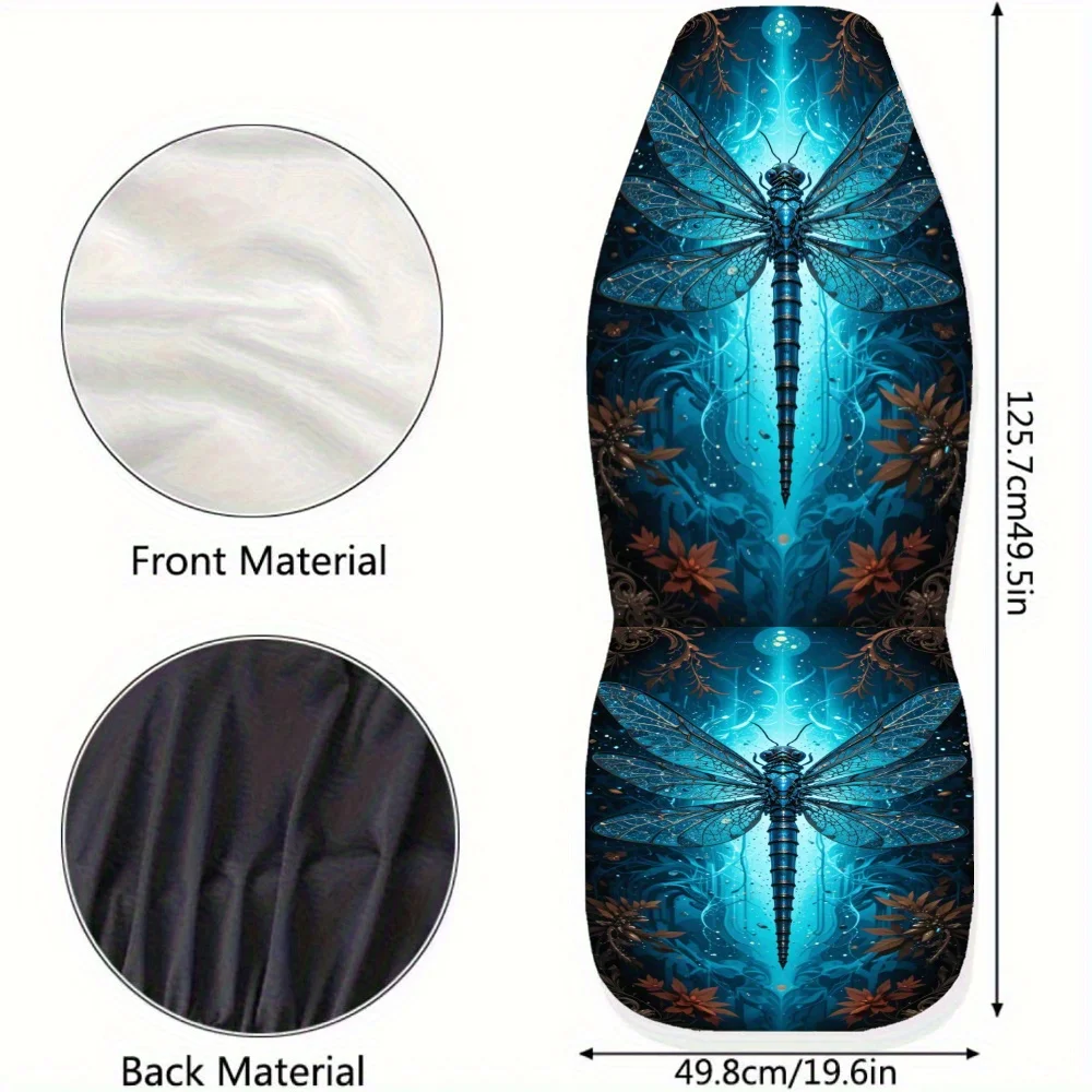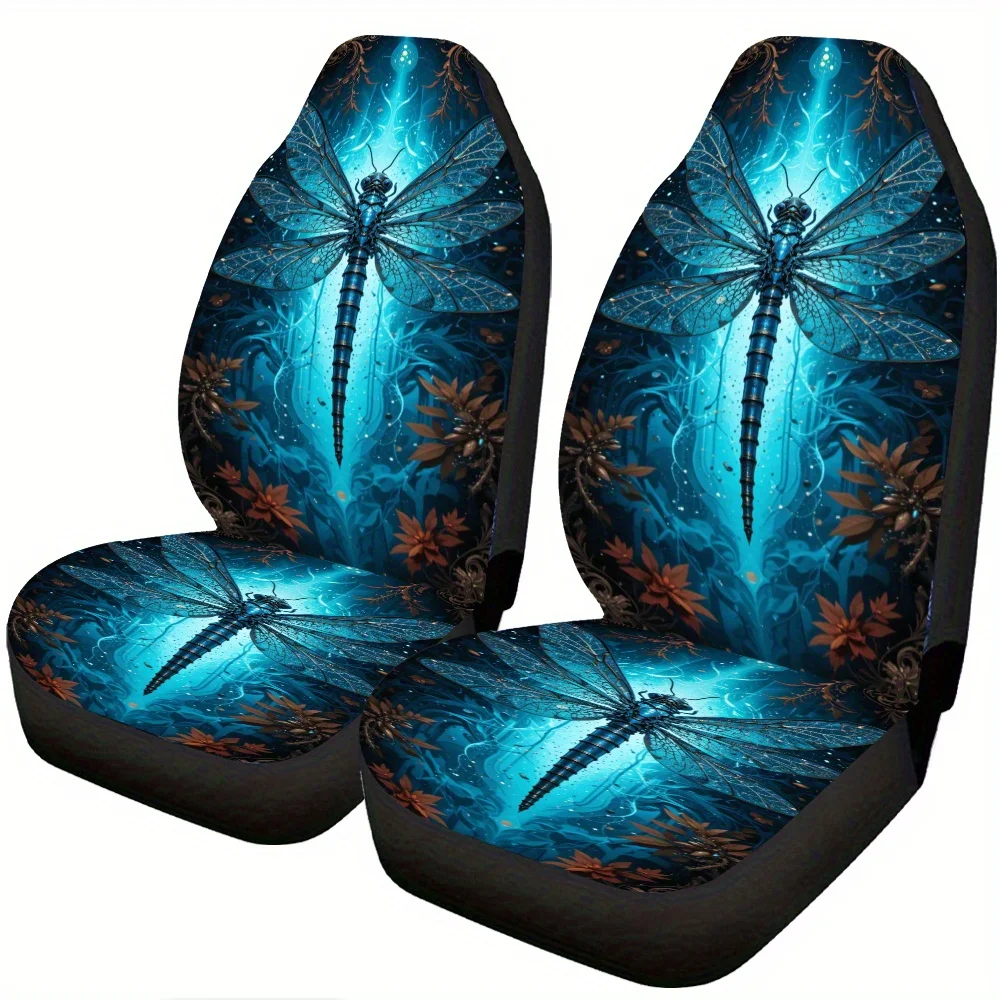 2pcs Blue Dragonfly Magic Car Seat Covers - Vibrant Blue & Orange Dragonfly Print, Durable Polyester, Fit For Cars, SUVs, Sedans