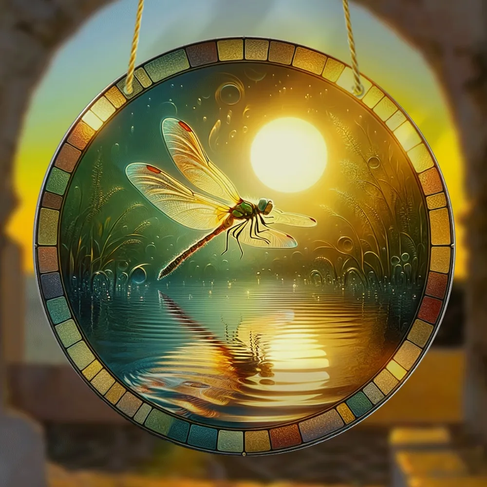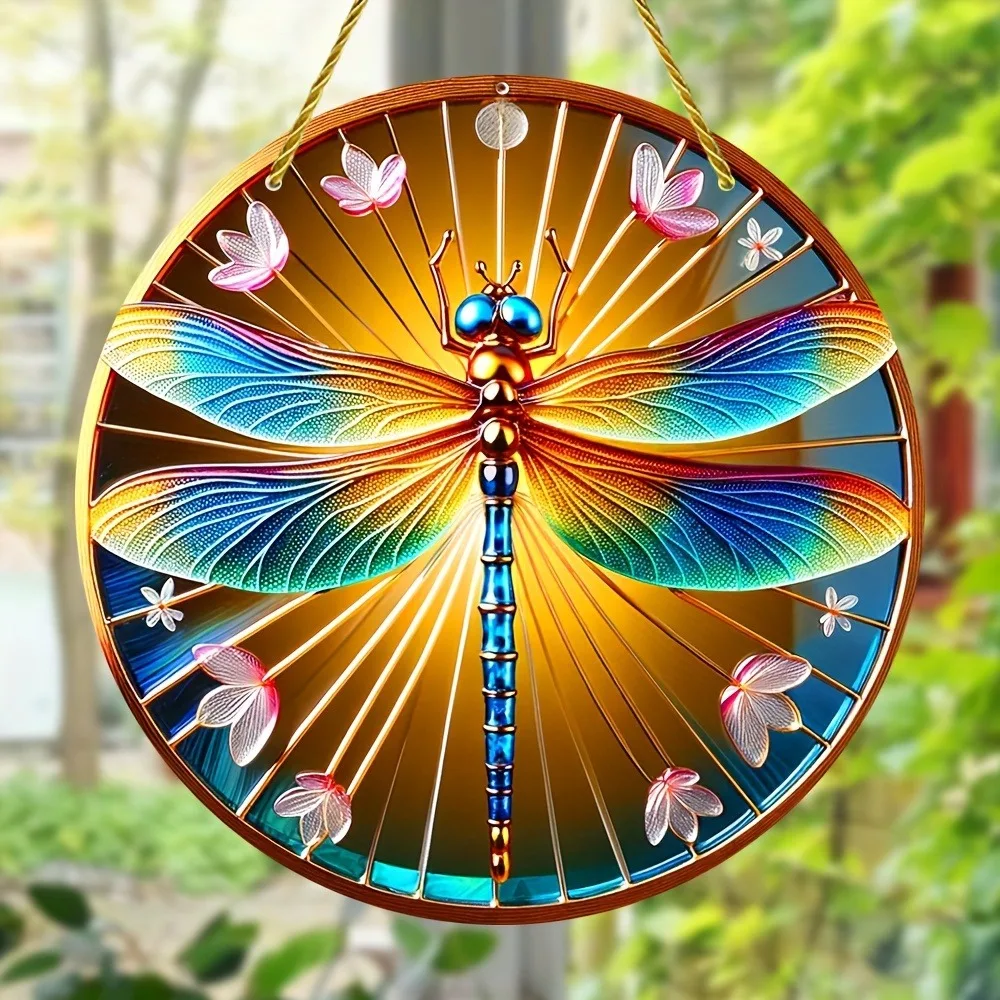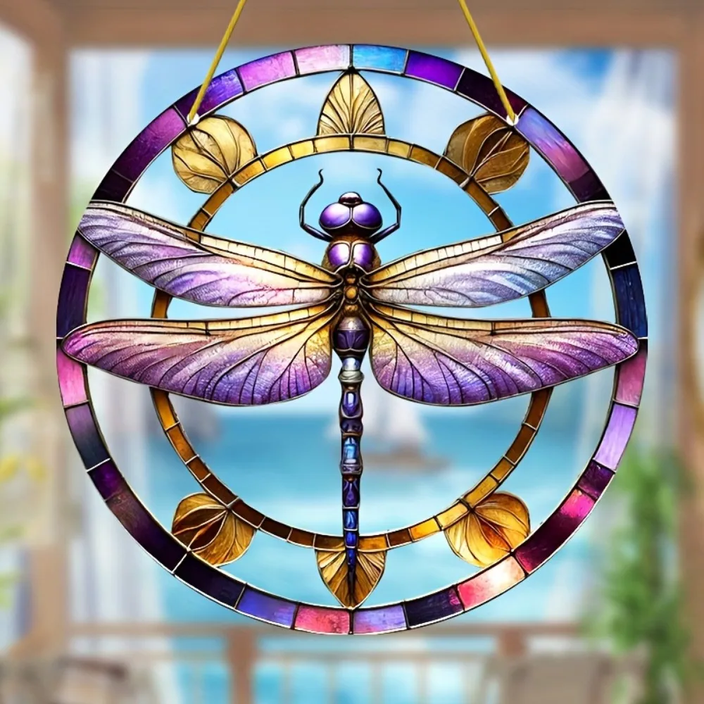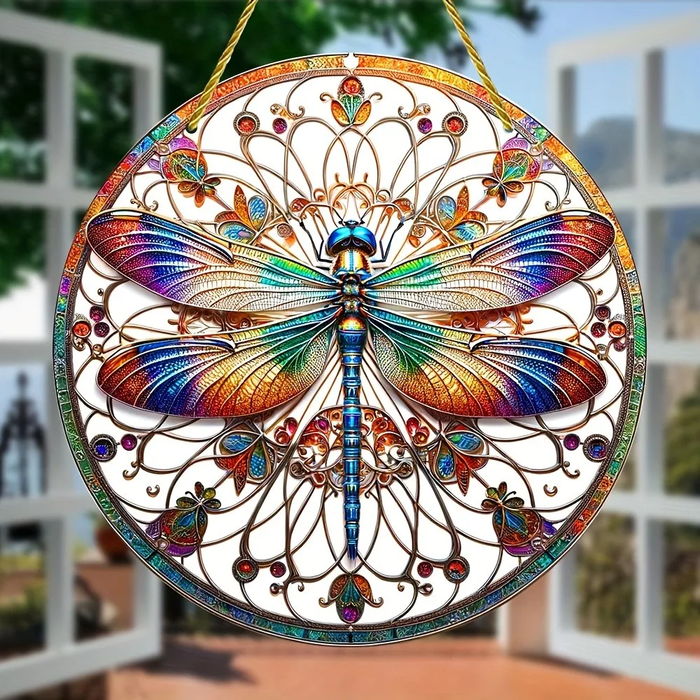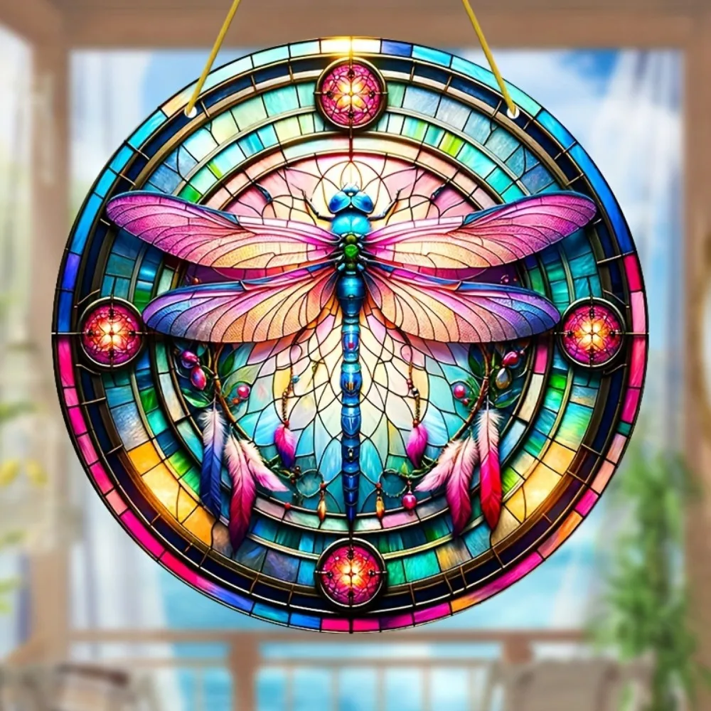 Dragonfly Suncatcher - Round Acrylic Wall Art, Stained -Style Window Hanging, Perfect For Bedroom & Living Room Decor
