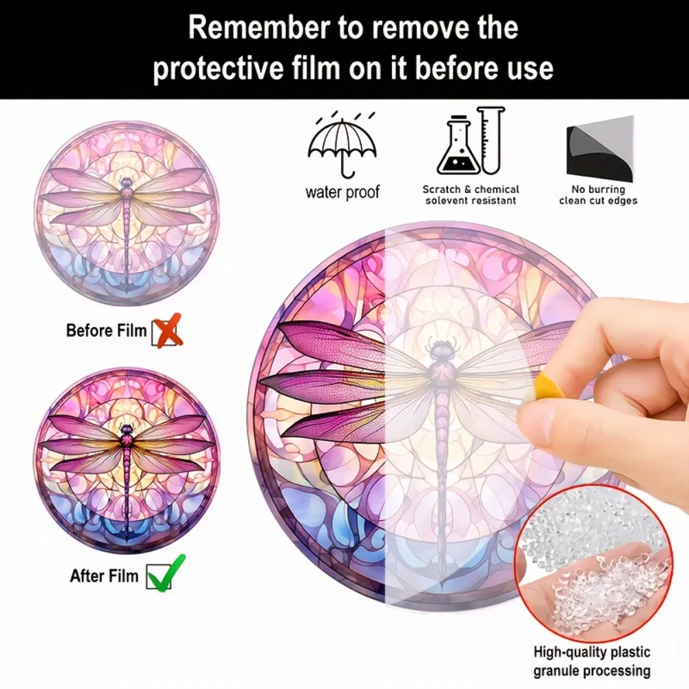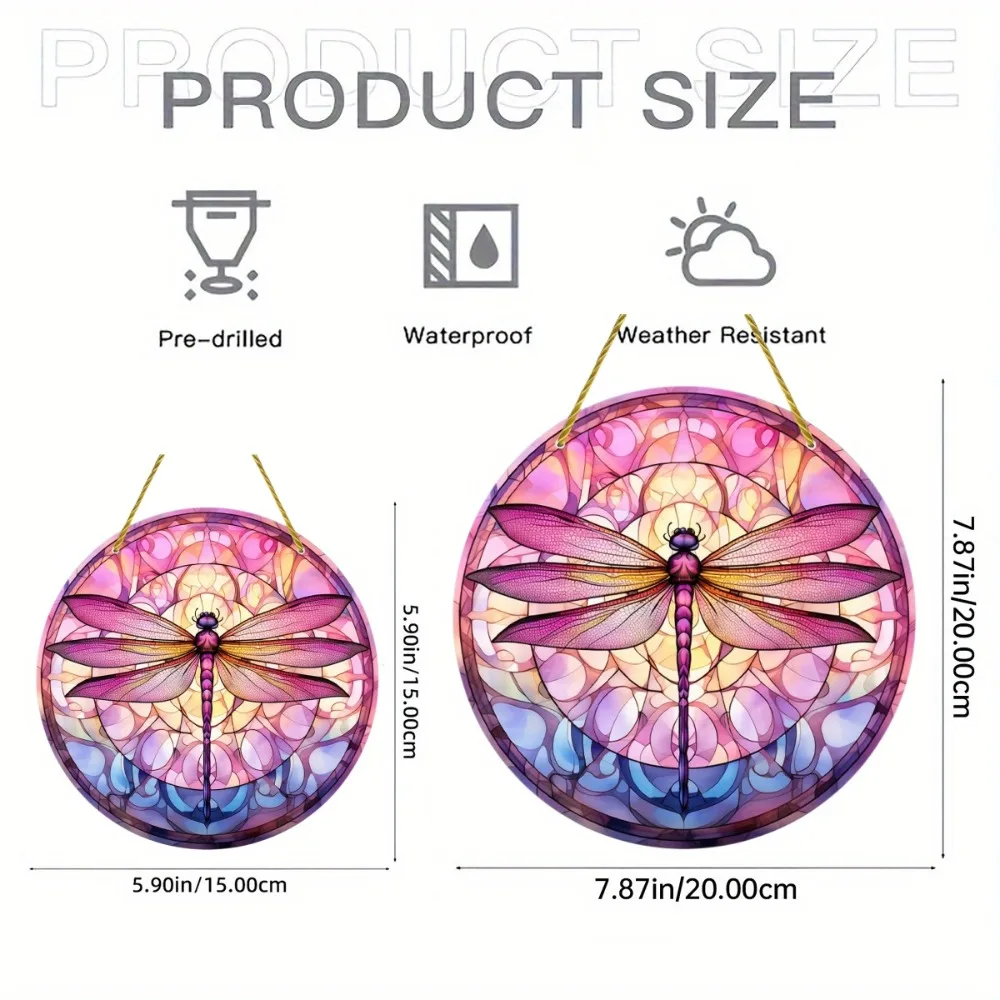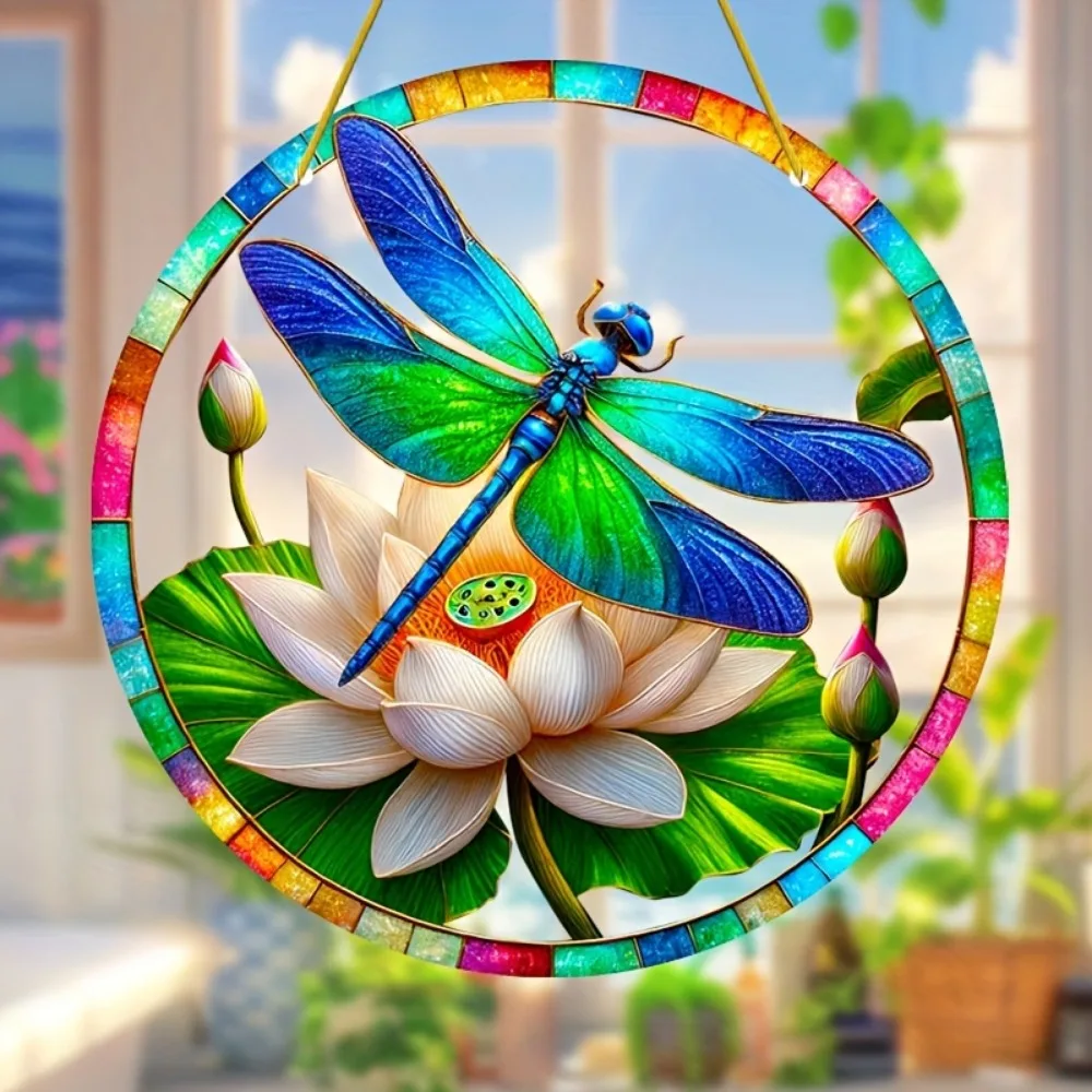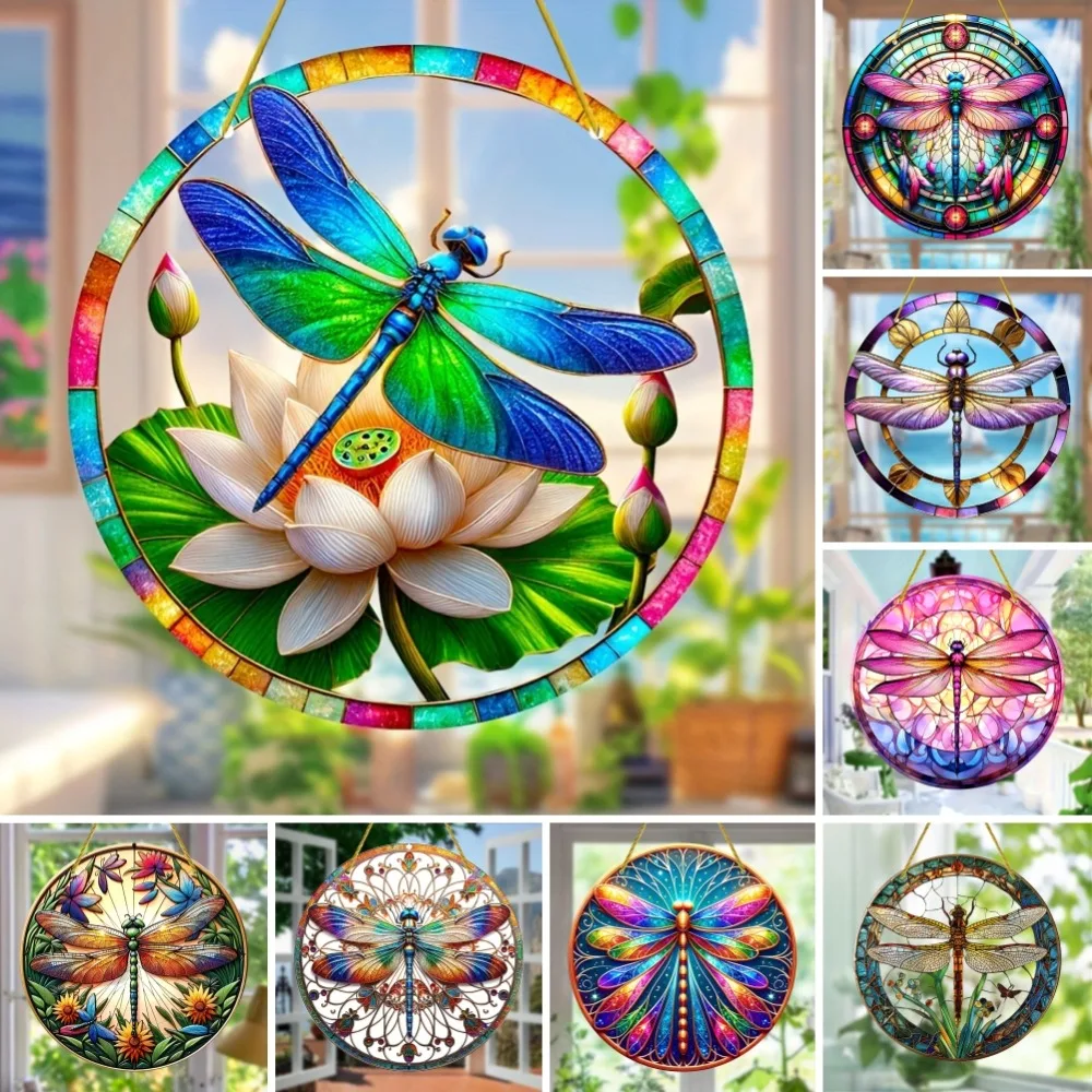 Dragonfly Suncatcher - Round Acrylic Wall Art, Stained -Style Window Hanging, Perfect For Bedroom & Living Room Decor