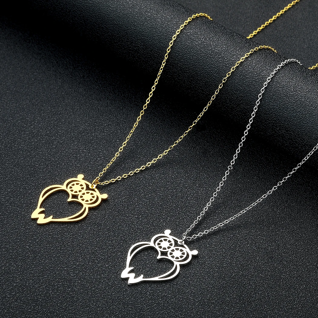 Todorova Cute Owl Pendant Necklace For Women Child Holllow Stainless Steel Animal Necklaces Choker Fashion Jewelry collier